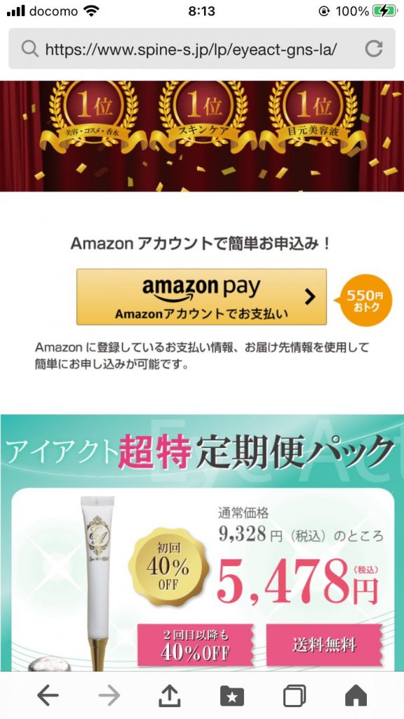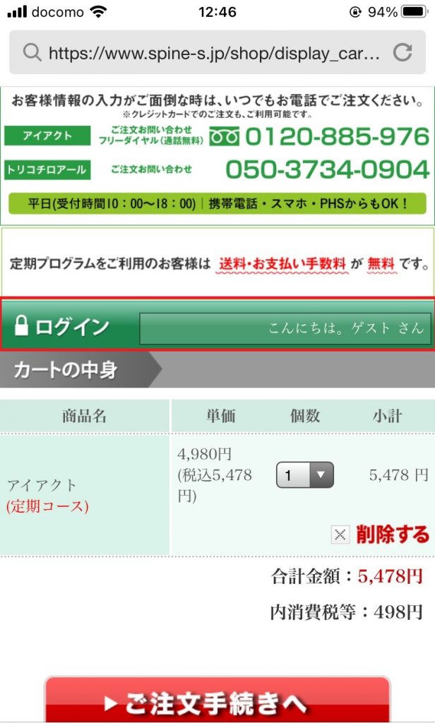 凄く分かりづらいですし、すぐ下の購入画面がありますので、間違えてご注文の手続きへを押してしまったりなど、そのまま進んでしまうと必要もないのにアイアクトを購入してしまうことになりますので、よくよく気を付けて下さい。とても重要なことです。