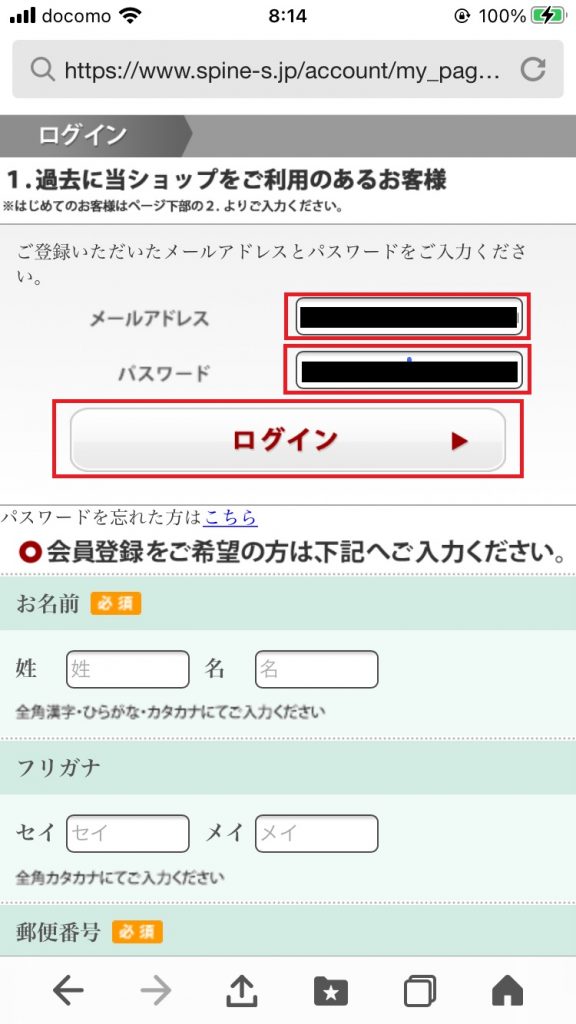 ここのログイン画面でメールアドレスと自分で決めたパスワードを入力します。